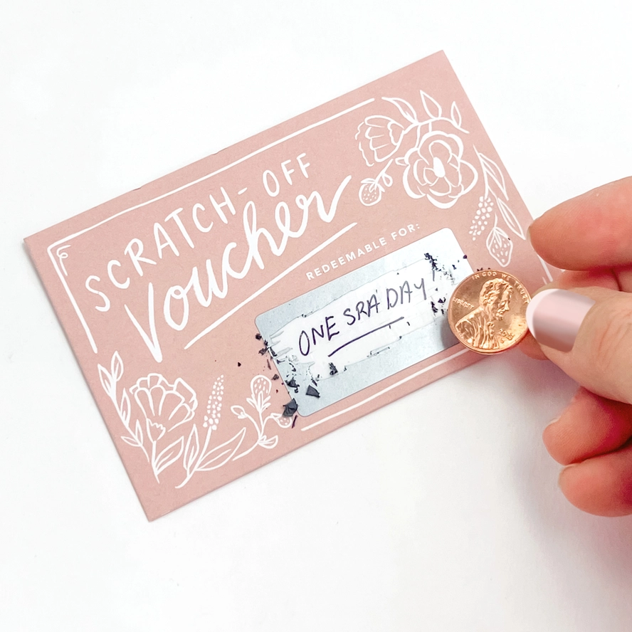 - Som gåva: Vill du göra ett presentkort eller ett penningpresent mer kreativt? Skriv beloppet eller gåvan på kortet – t.ex. “2 konsertbiljetter” eller “200 kr till shopping” – och låt mottagaren skrapa fram överraskningen.