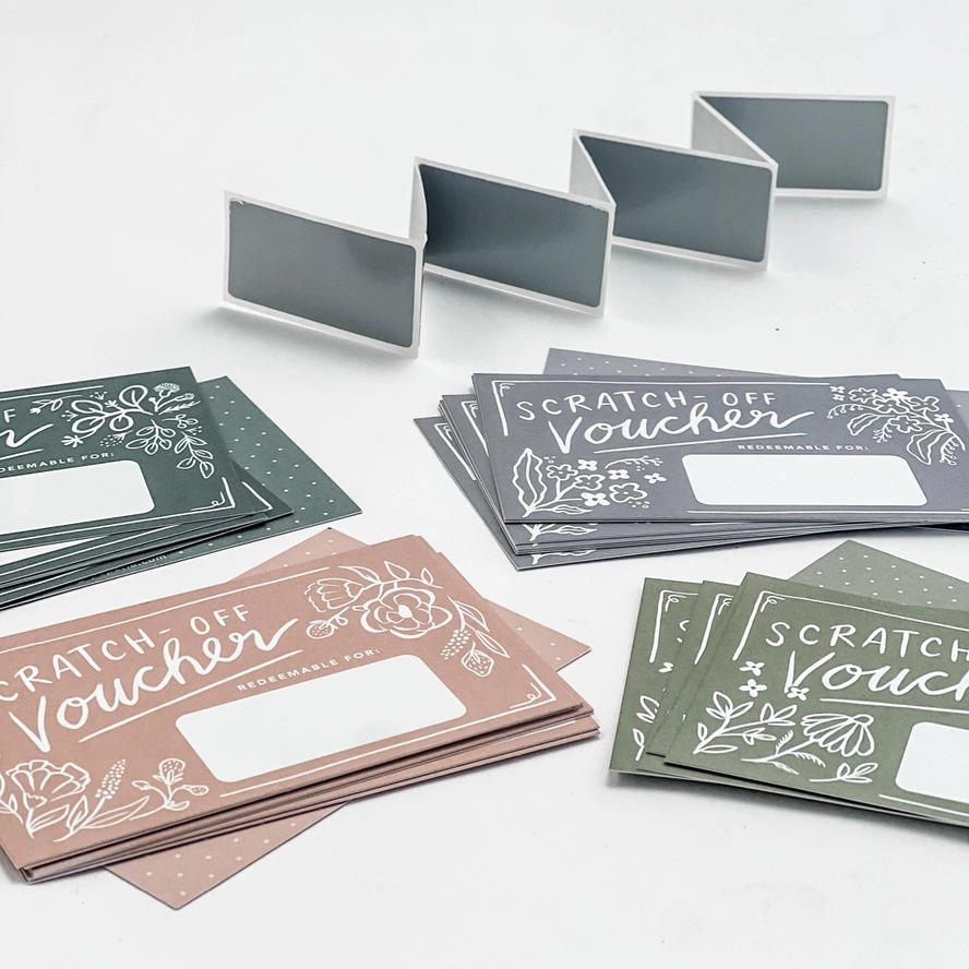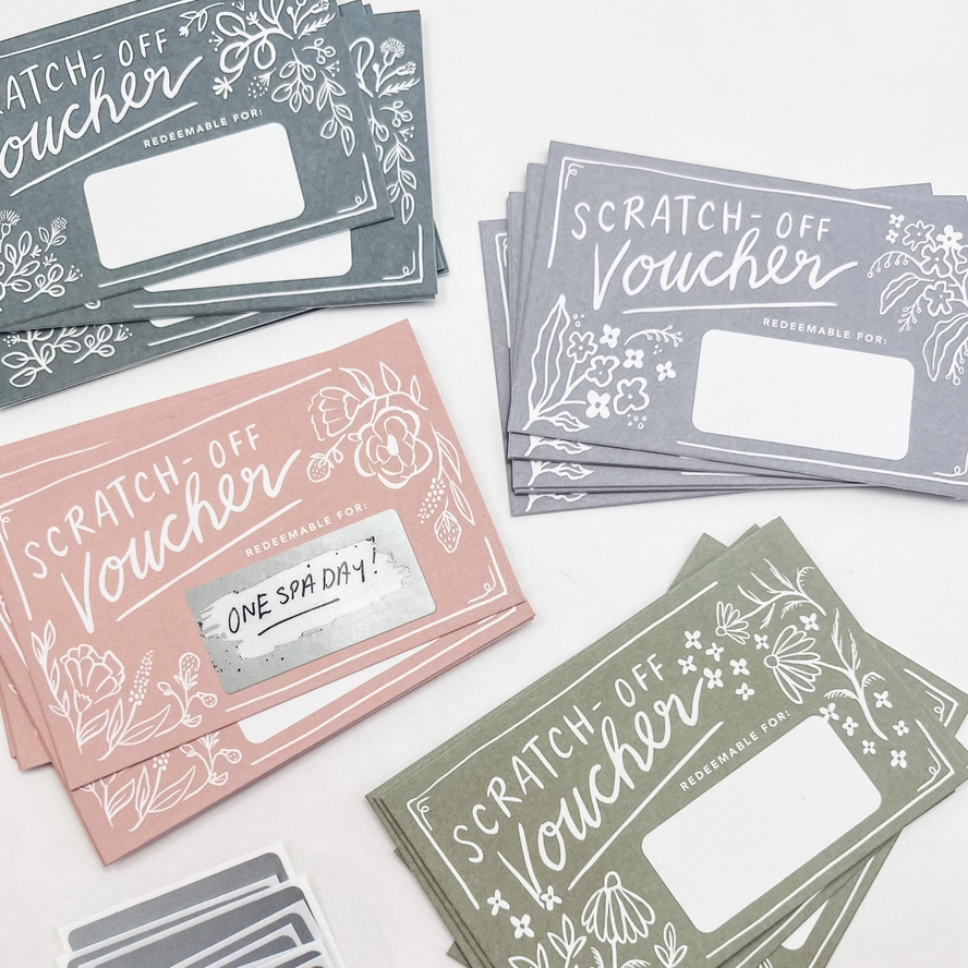 Gör det roligt och spännande att ge bort gåvor eller motivera barn med våra vackra Scratch-off Vouchers i ett elegant, blomsterinspirerat design!