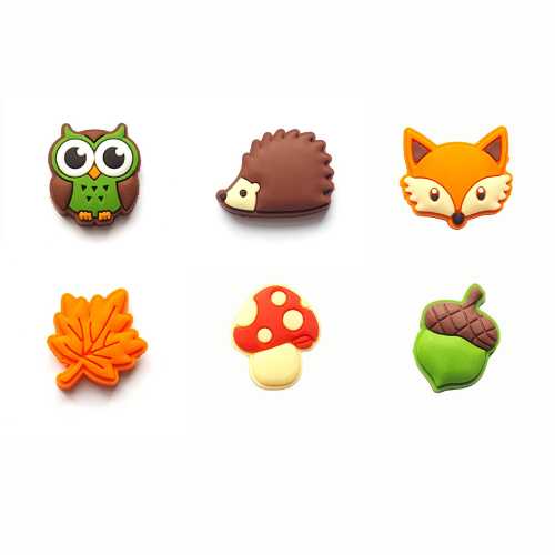 Detta är glasögoncharms som består av en uggla, ett igelkott, en räv, ett löv, en svamp och ett ekollon som kan dekorera glasögonen.