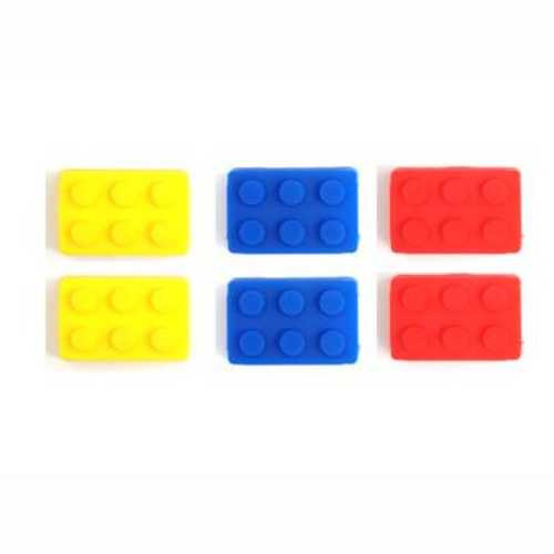 Detta är glasögoncharms som består av sex byggklossar i färgerna gult, blått och rött som kan dekorera glasögonen.
