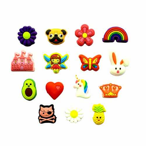 Detta set innehåller 15 olika glasögoncharms, så det finns gott om möjligheter att byta ut och dekorera glasögonen efter humör och tillfälle.