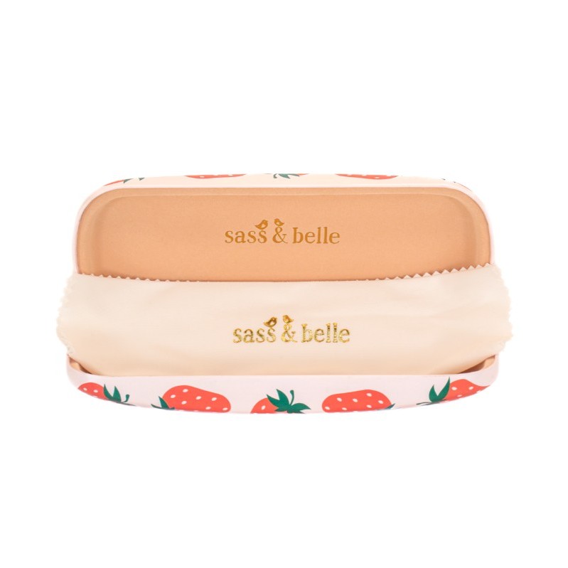 Snyggt glasögonfodral med motiv av jordgubbar från sass & bell.