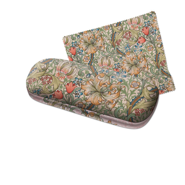 Ett snyggt glasögonfodral med konst av William Morris för förvaring av glasögon. Det här hardcase-glasögonfodralet har både mjukt mikrofiberfoder på utsidan och insidan.