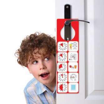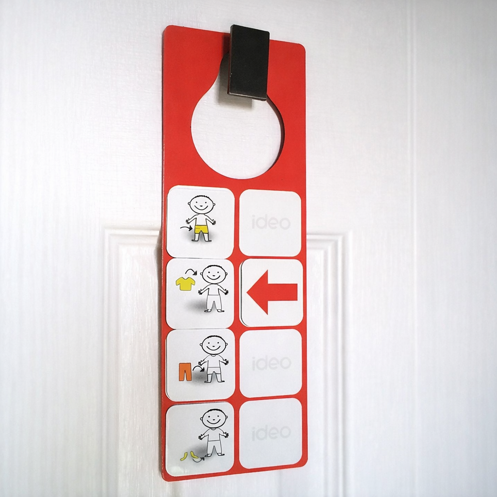 Dörrhängaren placeras enkelt på dörrhandtaget och fungerar som ett överskådligt, vertikalt planeringsverktyg – idealiskt för att visa dagens aktiviteter, rutiner eller skiften mellan till exempel ledig / upptagen, kommer tillbaka, arbetar, pauser eller dagens schema.