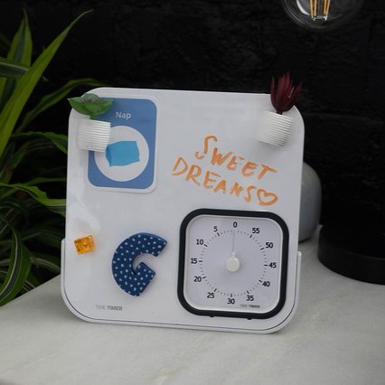 Dry Erase Board kan användas ensam som översiktstavla eller kombineras med en Time Timer MOD-klocka (tillval), så att tid och uppgifter samlas på ett och samma ställe. En idealisk lösning för barn och vuxna som har nytta av visuellt stöd i samband med läxor, undervisning, möten, pauser och vardagliga rutiner.