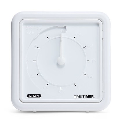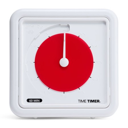Time Timer Medium Braille är framtagen med fokus på tillgänglighet och lärande. Den visuella nedräkningen stöds av: