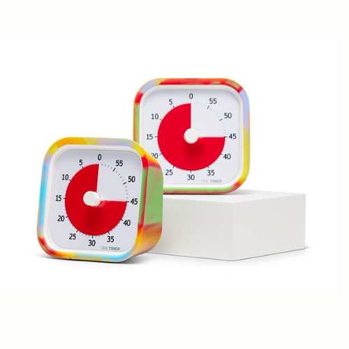 Gör tidsstyrning färgglad, personlig och överskådlig med Time Timer MOD Home Edition Tie Dye – en kompakt visuell timer från Time Timer som kombinerar den välkända Time Timer-funktionen med en unik tie-dye-design. Varje timer har sitt eget färgmönster, så ingen är exakt likadan.