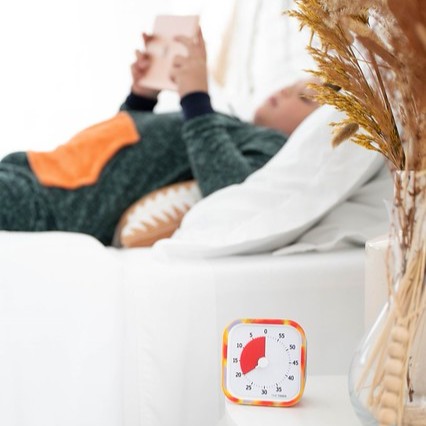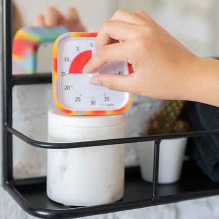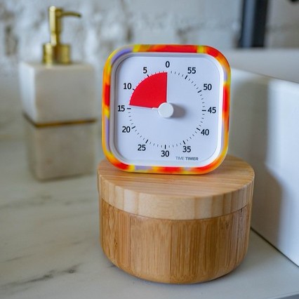 Time Timer MOD Home Edition Tie Dye är det perfekta valet när du vill kombinera struktur, överblick och personlig stil i en och samma visuella timer.