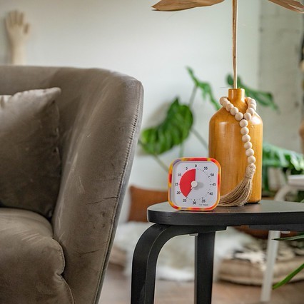 Den tydliga röda tidsdisken gör abstrakt tid konkret: När tiden går minskar den röda ytan gradvis, så det är lätt att se hur mycket tid som återstår – även utan att kunna klockan. Timern arbetar nästan ljudlöst och passar därför bra i ljudkänsliga miljöer.