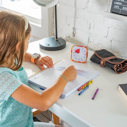 Time Timer MOD är designad för vardagen – hemma, i skolan och på språng. Det avtagbara, latexf ria silikonhöljet skyddar timern mot stötar och ger ett säkert grepp, medan den skyddande linsen täcker urtavlan. Den kompakta storleken gör den enkel att ta med i väskan och perfekt för skrivbordet.