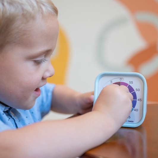 Timern visar tiden visuellt: färgskivan blir gradvis mindre allteftersom tiden går. Det innebär att man inte behöver kunna klockan för att förstå hur mycket tid som är kvar. Du vrider helt enkelt skivan till önskat antal minuter (upp till 60 minuter), och tiden räknas ned – ljudlöst.