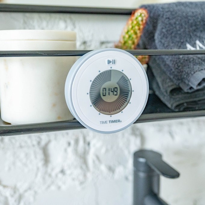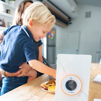 Inställningen är enkel: Vrid den yttersta ringen till önskad tid – precis som på en klassisk äggklocka – och tryck på play-knappen. Hela den visuella skivan representerar den valda tidsperioden och en digital display visar tydligt hur mycket tid som återstår.