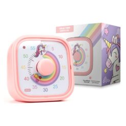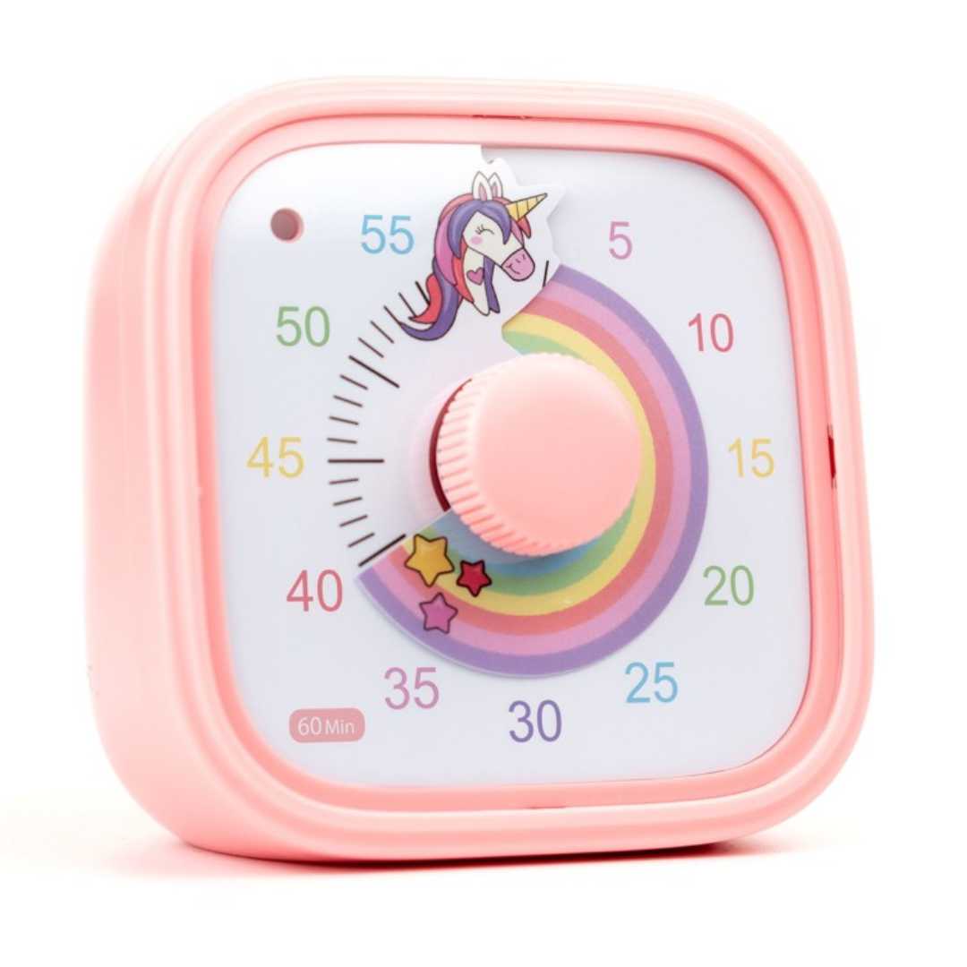 Det söta enhörningsmotivet och den färgglada regnbågsskivan gör det roligt för barnet att använda timern – och ökar motivationen att följa tiden.